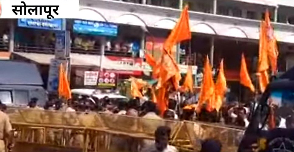 सोलापूर विमानतळ परिसर, मजरेवाडी, आसरा चौक आणि जुळेसोलापूर परिसरात सकाळपासूनच शिवप्रेमी कार्यकर्ते गनिमी काव्याने एकवटू लागले होते. याची पूर्वकल्पना असल्याने शहर पोलीस आयुक्तांनी बंदोबस्त वाढविला होता. एसआरपी पोलीस बलासह उस्मानाबाद पोलिसांचीही जादा कुमक दिसून आली. सकाळी राज्यपाल आपल्या ताफ्यासह विमानतळावरून निघाल्यानंतर आसरा चौकात सर्व शिवप्रेमींनी रस्ता दुभाजकाच्या एका बाजूला उभे राहून निदर्शने करीत राज्यपालांच्या निषेधाच्या घोषणा देत वातावरण दणाणून सोडले. तर दुभाजकाच्या दुसऱ्या बाजूने राज्यपालांच्या ताफ्याला मार्ग देत पोलिसांनी आंदोलकांना थोपवून धरले. यावेळी या निदर्शन आंदोलनात शिवसेना जिल्हाप्रमुख पुरुषोत्तम बरडे, शहरप्रमुख गुरुशांत धुत्तरगावकर, राष्ट्रवादी काँग्रेसचे शहर कार्याध्यक्ष संतोष पवार, माजी उपमहापौर पद्माकर काळे, काँग्रेसचे पालिका गटनेते चेतन नरोटे, नगरसेवक विनोद भोसले, गणेश डोंगरे, सकल मराठा समाज संघटनेचे समन्वयक माऊली पवार, दास शेळके, प्रताप चव्हाण, संभाजी आरमारचे संस्थापक अध्यक्ष श्रीकांत डांगे यांच्यासह असंख्य कार्यकर्ते उपस्थित होते. यामध्ये महिलांचा देखील सहभाग होता. कार्यकर्त्यांनी निदर्शने केल्यानंतर पोलिसांनी त्यांना ताब्यात घेतले. सकाळपासून ते राज्यपाल परत जाईपर्यंत या परिसराला छावणीचे स्वरूप आले होते. शिवप्रेमी आंदोलकांनी रीतसर निदर्शने करीत आपले आंदोलन यशस्वी केले. कुठलाही अनुचित प्रकार न घडल्याने पोलिसांनी देखील सुटकेचा निश्वास टाकला.