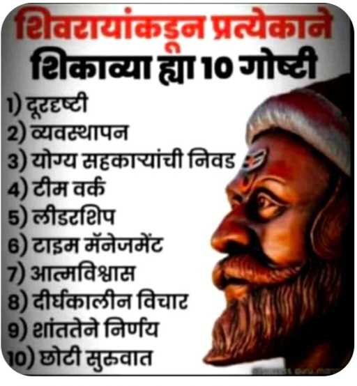 छत्रपती शिवाजी महाराज म्हणजे फक्त गनिमी कावा एव्हढंच आपल्याला माहीत आहे. पण महाराजांच्या अंगी असणाऱ्या गुण वैशिष्टांपैकी हे दहा गुण वैशिष्ट्ये जरी अंगी बाळगली तर यश नक्कीच आपल्या पायावर लोळण घेईल.