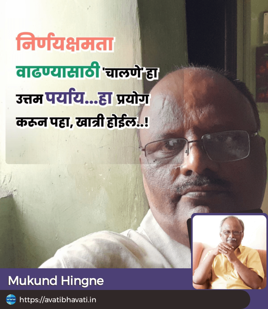 चालण्यातून फक्त आपली गरीबी झाकण्याचा प्रयत्न होतोय असा गैरसमज बाळगू नकात….कारण कित्येक गर्भश्रीमंत लोकांना चालण्याचे महत्व पटल्यानंतर त्यांनी आपल्या आलिशान, महागड्या वाहनांचा ताफा सोडून पायी चालणे पसंद केले आहे. मी कुणी ‘तर्कतीर्थ’ नाही की कुणी ‘तत्वज्ञ’ नाही….एक साधा मध्यमवर्गीय माणूस आहे. ज्याला चारचौघात आजही आपली स्वतःची ‘ओळख’ सांगण्या इतपतही स्वतःजवळ ‘कर्तृत्वाची’ शिदोरी नाही. पण आत्मविश्वास वाढण्याबाबत माझ्या अनुभवातून तयार झालेलं ‘मत’ मी इथं मांडतोय, हवं तर तुम्ही त्याला ‘तर्क’ म्हणू शकता. चालताना आपल्या शरीराचा आणि सर्व इंद्रियांचा ‘समतोल’ राखत आपली पावले पडत असतात. सर्व इंद्रियांचा आदेश पाळतच ही पावले पडत असल्याने आपोआपच चालण्याची गती आणि इंद्रियांची क्रिया-प्रतिक्रियांची गती समान असते. त्यामुळे तुम्ही चालताना ज्या विषयावर विचार करत असता त्याच्या ठाम निर्णयावर तुम्ही पोहचता. ही गती तुम्हाला वाहन चालवताना मिळत नाही. त्या अवस्थेत इंद्रियांच्या क्रिया-प्रतिक्रियांच्या गती पेक्षा वाहनाची गती जास्त असते. त्यामुळे तुम्ही वाहन चालवताना ज्या विषयाचा विचार करता त्याच्या ठाम निर्णयापर्यंत पोहोचण्यात तुम्ही अपयशी ठरता. त्यावेळी तुमचा आत्मविश्वास डळमळीत झालेला असतो. तुम्हाला याची खात्री करून घ्यायची असेल तर अगदी सोप्प आहे….पहाटे फिरायला निघालात की चालताना आजच्या दिवसभरातील कामाचा एक गोषवारा तयार करा…बघा काय गम्मत होतेय ती. नक्कीच दिवसभरातील ठरवलेली सर्व कामे तुमच्या बाजूने सकारात्मक निर्णय देणारी झाल्याचे तुमच्या लक्षात येईल. अर्थातच त्यामुळे तुमचा आत्मविश्वास वाढेल. शेवटी समाजाला नवा विचार देणारे आपल्याकडचे सर्व संत, तत्वज्ञ पायी चालत भ्रमंती का करत होते ? बघा…..हा तर्क पटला तर दिवसातून काही किलोमीटर नक्की चालण्याचा सराव करा. झाला तर फायदाच होईल, गुंतवणूक काही नाही….नुकसानही काही नाही.