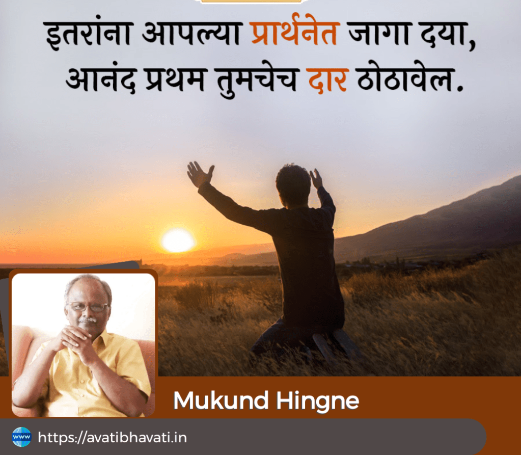 आपल्या रक्ताच्या नात्याचा नसला, फारशी जवळीकता साधलेला नसला, अगदीच तोंड ओळखीचा असला तरी भेटल्यावर चेहऱ्यावर छानसं हसू आणत आपण त्याला विचारतोच ‘कसे आहात ?’ हे विचारण्यामागे तुमची तब्येत कशी आहे ? एव्हढीच माहिती आपल्याला पुरेशी नसते. तर त्याच्या संबंधी आपल्याला अधिक जाणून घ्यायचे असते. तो देखील उत्तरादाखल आपल्याला हवी असणारी त्याच्याबद्दलची सगळी माहिती एका दमात सांगून मोकळा होत असतो. हा संवाद नेमका याच दिशेने का जात असतो..? कारण त्याला आणि आपल्याला दोघांनाही एकमेकांतील सदभावाचे नाते अधिक घट्ट करायचे असते. म्हणूनच कोणत्याही भाषेत, कोणत्याही ठिकाणी सकारात्मक संवादाची सुरुवात ‘कसे आहात ?’ याच प्रश्नाने होत असावी. एकमेकांची काळजी करणारी भावना आणि जवळीकता साधणारे संवाद असले की ‘नाती’ अधिक वेगाने घट्ट होत जातात. त्यामुळेच या सदभावनेच्या वाटेने पुढे जात असताना वेळोवेळी-क्षणोक्षणी त्या अनामिक शक्तीचे आभार मानले पाहिजे, ज्या शक्तीमुळे नात्याची वीण अधिक घट्ट होत जात असते. याबरोबरच परमेश्वराची आपण प्रार्थना देखील केली पाहिजे…..इथवरचा प्रवास तुझ्याच कृपाशीर्वादाने झाला आहे आणि आता पुढचा प्रवास देखील विनासायास घडू दे, याबरोबरच माझ्यासारखे असंख्य परिचित-अपरिचित प्रवासी यामार्गाने आपला जीवनप्रवास करीत आहेत. त्यांना तू आंतरिक सामर्थ्य दे ! स्वतःसाठी तर आपण क्षणोक्षणी प्रार्थना करत असतो. दुसऱ्यासाठी निरपेक्ष भावनेने जर आपण प्रार्थना करत असुत तर आपल्या जीवनात आनंदाची अधिक प्रमाणात उधळण परमेश्वर करणार यात शंका बाळगण्याचे काहीच कारण नाही. त्यामुळे आपल्या प्रार्थनेत इतरांना जागा द्या.