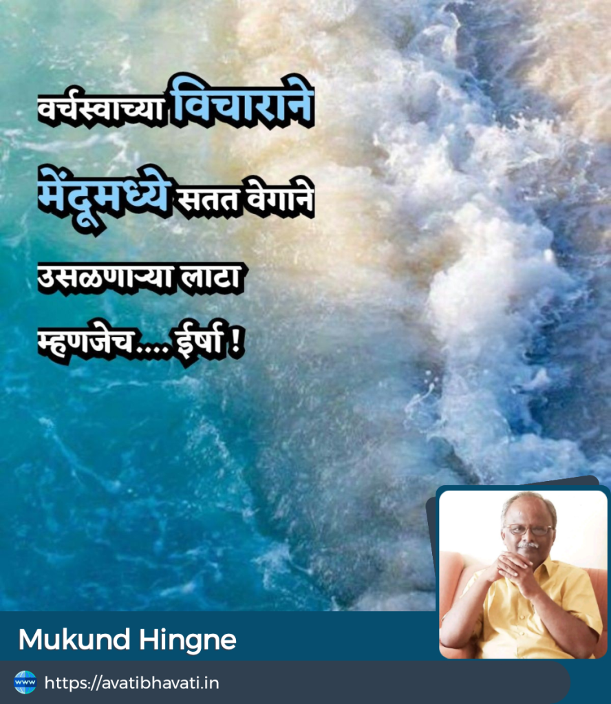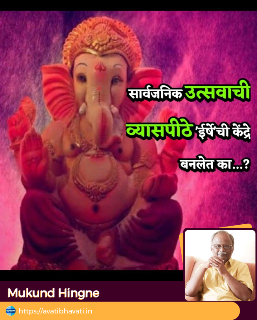 कालच बुद्धीची देवता श्री गणेशाचे अगदी उत्साहात, जल्लोषात आगमन झाले आहे. आता गणरायाचा दहा दिवस मुक्काम असल्याने घराघरातून धार्मिक विधी आणि पारंपारिक पद्धतीच्या सांस्कृतिक उपक्रमांची रेलचेल सुरू होणार. पुढे वर्षभर अगदी पुढच्या वर्षीच्या गणेश आगमनापर्यंत चर्चेत राहण्यासाठी ईर्षेने उत्सव साजरा करण्याकडे सर्वांचा कल असतो. आजकाल कोणतीही कृती ही ‘ईर्षे’ शिवाय पूर्ण होतंच नाही. प्रत्यक्ष परमेश्वराशी देखील माणूस ‘ईर्षा’ करायला मागेपुढे पहात नाही.