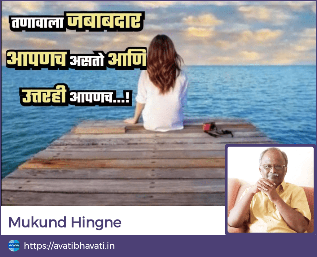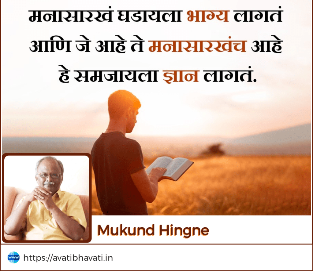 असं म्हणतात की, मनाप्रमाणे घडायला ‘भाग्य’ लागतं आणि आपल्या सोबत जे घडतंय ते देखील आपण विचार केला होता असंच घडतंय. मग बघा, तुमच्या आयुष्यातील कितीतरी तणावाचे प्रसंग आपोआप विरघळलेले तुम्हाला अनुभवता येतील. एकदा का परिणामांची तीव्रता कमी जाणवू लागली की तुम्ही त्याच्या बदलांवर अधिक जोरकसपणे काम करू शकता.