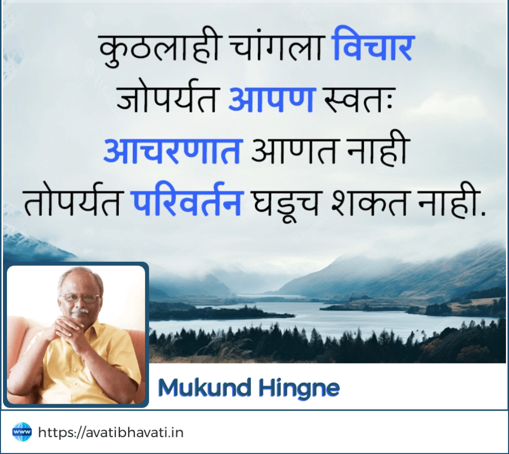 माणसाचं मन फार चंचल तर असतंच पण ते मत्सरी पण असतं. दिवसभर आपण जे काम करतो, त्यातील नव्वद टक्के भाग आपण फक्त आणि फक्त मत्सरातून कुणाशी तरी सतत स्पर्धा हवी या इर्षेपोटी करत असतो. आपल्याला काहीतरी करावेसे मनापासून वाटणे हा केवळ दहा टक्केच भाग असतो. म्हणजेच कोणतेही काम जर आपण इर्षेपोटीच करणार असू तर त्या कामाचे फलित काय असणार ? पुन्हा त्यातून नव्या ईर्षेचा जन्म होणार. कोणतीही इच्छा, ईर्षा, स्पर्धा न करता जर आपण कार्य करू शकलो तर त्याचे फलित म्हणून ‘समाधान’ तर नक्कीच आपल्या पारड्यात पडणार आहे. याशिवाय नवनिर्मिती आणि परिवर्तनाचे आपण साक्षीदार ठरू. पण आपल्या आयुष्यातील बदल देखील इतरांशी तुलना करत ठरवत असल्याने आपली बदलाची व्याख्या देखील ‘इतरांच्या तुलनेत’ अशीच असते.