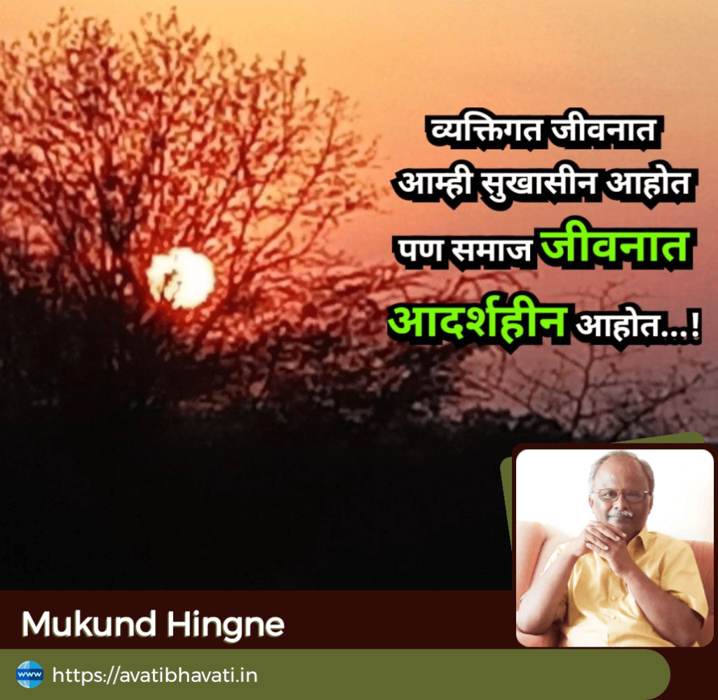 आज तुमच्या पिढीमधील तुमचा कुणी ‘आदर्श’ आहे का ? असा प्रश्न आपल्याला कुणी विचारला तर अडखळल्या सारखं होतं. आज मी ५७ वर्षे वयाचा आहे. मला माझ्या पिढीतील आदर्श व्यक्ती म्हणून ज्यांचा उल्लेख करावासा वाटतो अशी बोटावर मोजण्याइतकीच नावे सांगता येतील. म्हणजेच समाजात ‘आदर्श’ निर्माण करण्यात माझी ‘पिढी’ सपशेल फेल गेली असं दुर्दैवाने आपण म्हणू शकतो. हे असं का व्हावं….?
