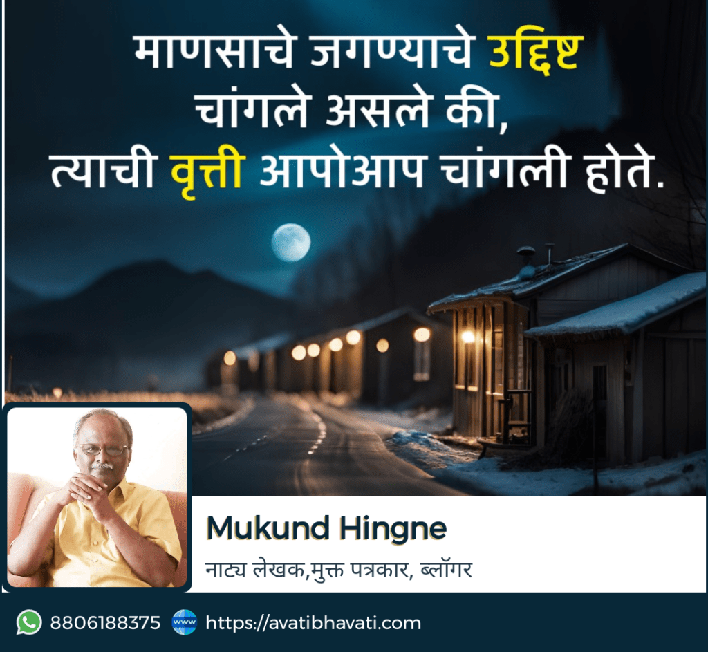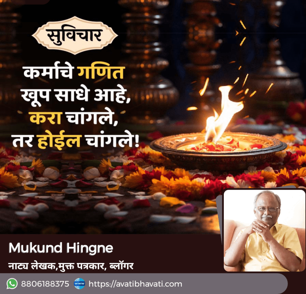 माझ्यासारखे असंख्य लोक आहेत, ज्यांच्या आयुष्यात फक्त ‘संघर्ष’च आहे. बहुदा आमच्या सारख्या दुर्बल आणि लक्ष वेधून घेण्याची कला अवगत नसणाऱ्या लोकांच्या भाळी जन्मल्यावरच सटवाईने विदाऊट कमिशन ‘संघर्षांचं’ भाकीत कोरलं असावं. जाणता होईपर्यंतचे आयुष्य हे सगळ्यांचेच खुशालीचे असते. खरा प्रॉब्लेम पुढेच असतो. जेंव्हा कुटुंबाची जबाबदारी अंगावर पेलण्याची वेळ येते तेंव्हा आमच्यासारखे कमनशिबी लोक नेहमीच ‘कर्मदरिद्री’ म्हणून परिस्थितीकडून हिणवल्या जात असतात. ब्रह्मदेवाकडे जेंव्हा ‘नशिबाचं दान’ मागायला गेलो तेंव्हा आम्ही लोक ‘चाळणी’ घेवून गेलो होतो, असाही एक लोकप्रवाद सांगितला जातो. माणूस म्हणून जन्म घेताना गरज नाही की तुम्ही नवकोट नारायणाच्या पोटीच जन्म घ्यावा. अगदीच शूरवीर, पराक्रमी किंवा कर्तृत्ववानाच्या पोटी जरी जन्म मिळाला नाही तरी चालतो. जन्म कुणाच्याही पोटी असुद्या फक्त सटवाईने ‘कर्मदरिद्री’ असा गोल शिक्का कपाळी मारलेला नसावा. नाहीतर मग तुमची आयुष्यभराची ‘होरपळ’ ठरलेलीच आहे. जर सटवाईने लिहिले की आयुष्यभर ह्याची आदळआपट झाली तरी उत्तरार्ध चांगला असेल….तरच आमच्या सारख्यांना मनुष्यजन्म घेतल्याची सार्थकता लाभते. बाकी आपल्या मनगटात आपले भविष्य असते वगैरे सुभाषित-सुविचार म्हणून ठीक असतात. असं जर रडगाणं कुणी गायलं तर खुशाल समजा की तो एकलकोंडा तर आहेच त्याचबरोबर माणसांत मिसळत नसल्याने त्याच्यात आत्मविश्वासाची कमतरता आहे. शेवटी कर्माचे गणित खूप सिम्पल असते….करा चांगले तर होईल चांगले अर्थात पेराल तसेच उगवेल.