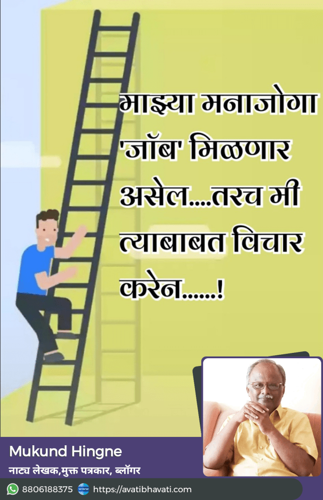 एकीकडे भारतासारख्या सर्वात मोठ्या लोकशाहीवादी देशात बेरोजगारीचा प्रश्न गेल्या १५ वर्षात उग्ररुप धारण केलेला दिसत असताना भारतीय तरुणांमध्ये जॉबसाठी मोठ्या प्रमाणात धरसोडवृत्ती दिसत आहे. मुळातच आपण घेतलेले शिक्षण आणि आपल्याला करिअर म्हणून आवडणारे क्षेत्र वेगवेगळे असल्यामुळे अनेकजण आहे तो ‘जॉब’ लाथाडून आवडीच्या क्षेत्रात जॉब मिळवण्याच्या प्रतीक्षेत बेरोजगार होतात. तर बऱ्याच जणांना आपल्या क्षमतेबाहेरचे काम हवे असते. ते केवळ त्यापासून मिळणाऱ्या आकर्षक ‘कमाई’मुळे. पण या स्वप्नरंजनामुळे ते ‘जॉब’ मिळविण्यासाठी विशेष धडपड करताना दिसत नाहीत. पर्यायाने असे तरुणही बेरोजगार होत आहेत.