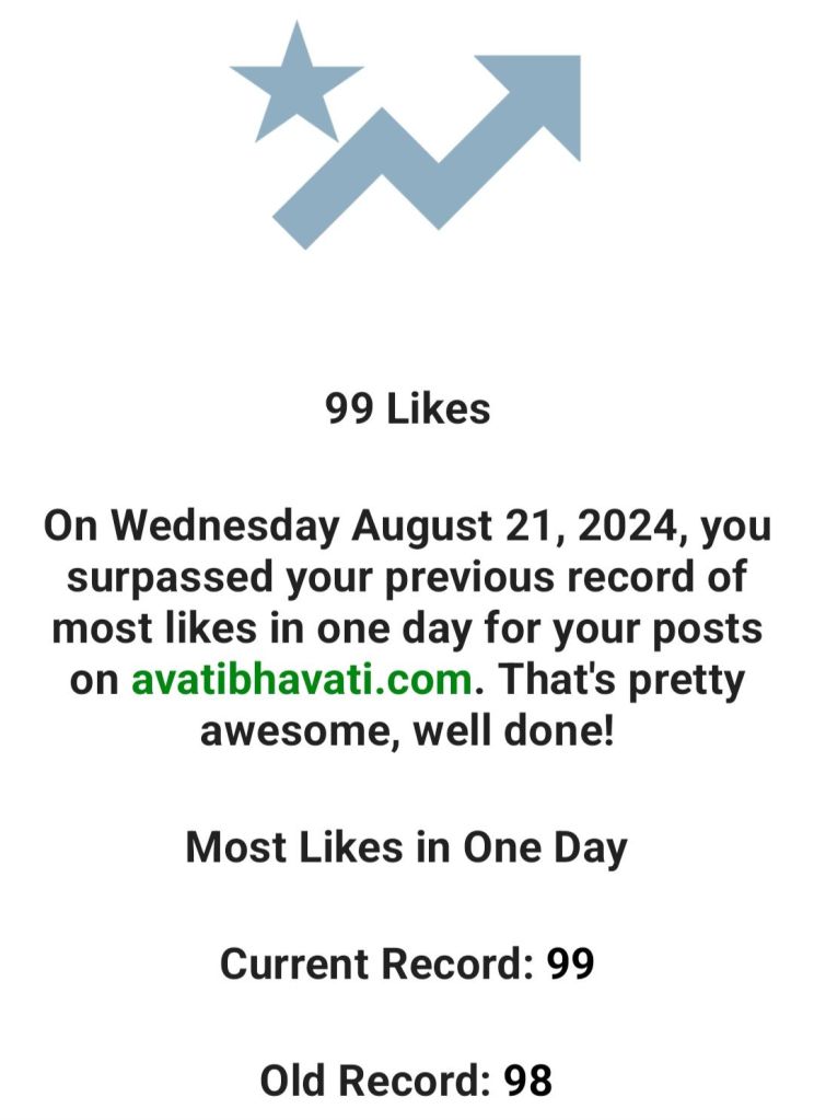 Since I started my blog “avatibhavati.com” on WordPress, yesterday was the first time I reached the milestone of 140 likes in a single day, which brought me immense joy. Starting a blog in Marathi and getting responses from around the world is quite a challenging task. It took me a year and a half to find my footing. Then, with the help of a translator, I began writing the blog in both English and Marathi. Gradually, subscribers and likes started increasing. What does a writer want? For their writing to be appreciated, for someone to genuinely enjoy it. That’s enough to make a writer happy. Now, I’m getting likes and views from countries whose names I didn’t even know. Yesterday was extraordinary… the likes crossed a century mark. Heartfelt thanks to all the bloggers who liked my articles. Keep the appreciation coming; it motivates me to write more.