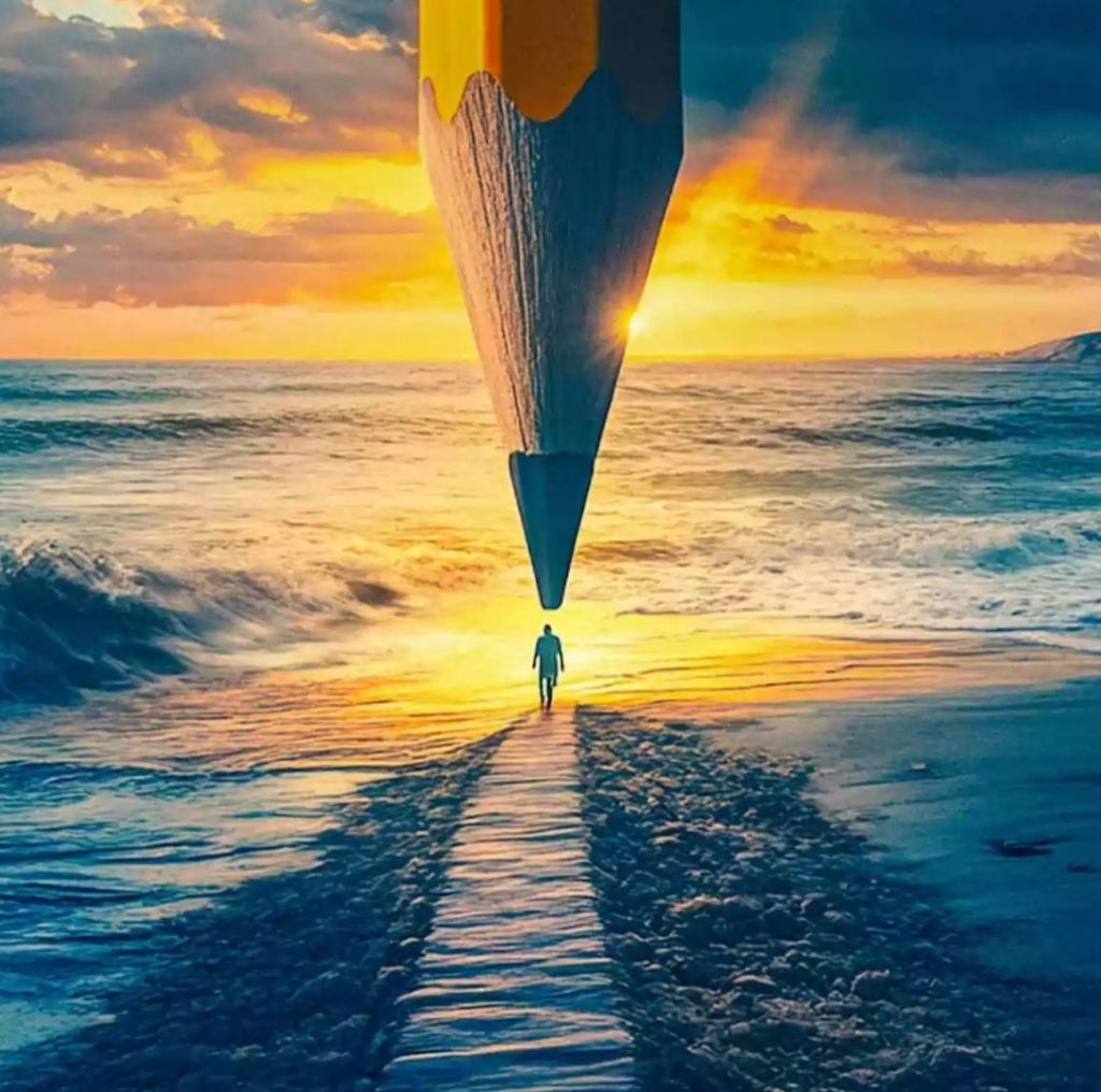 फोटोतील पेन्सिल आकाशातून आलेली असली, तरी ती दर्शवते की तुमचं भविष्य कुण्या देवावर, नशिबावर अवलंबून नाही – ती तुमच्या विचारांवर आणि कृतीवर अवलंबून आहे. ही पेन्सिल म्हणजे तुमची प्रेरणा, सर्जनशीलता आणि आत्मनिर्णयाचं प्रतीक आहे. ज्याप्रमाणे लेखक कथा लिहतो, तसंच तुम्ही तुमचं जीवन लिहू शकता – अक्षरशः!
