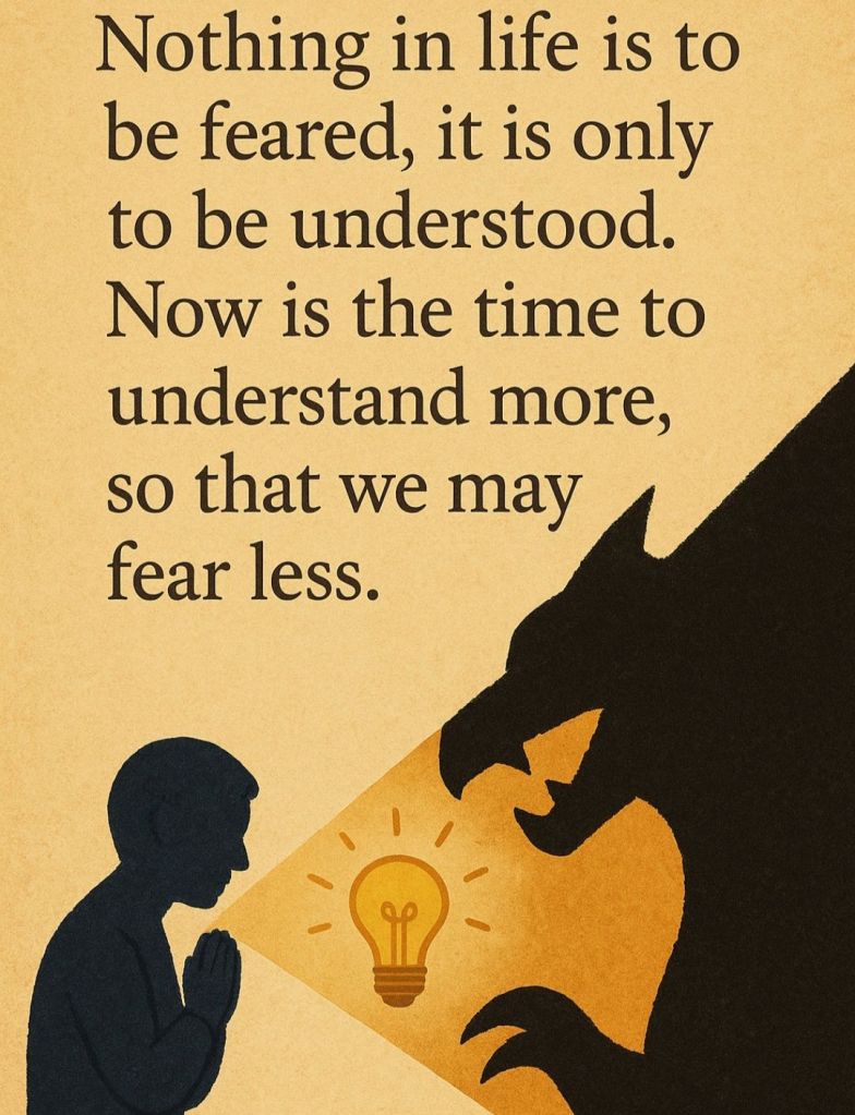 Nothing in life is to be feared, it is only to be understood. Now is the time to understand more, so that we may fear less.
