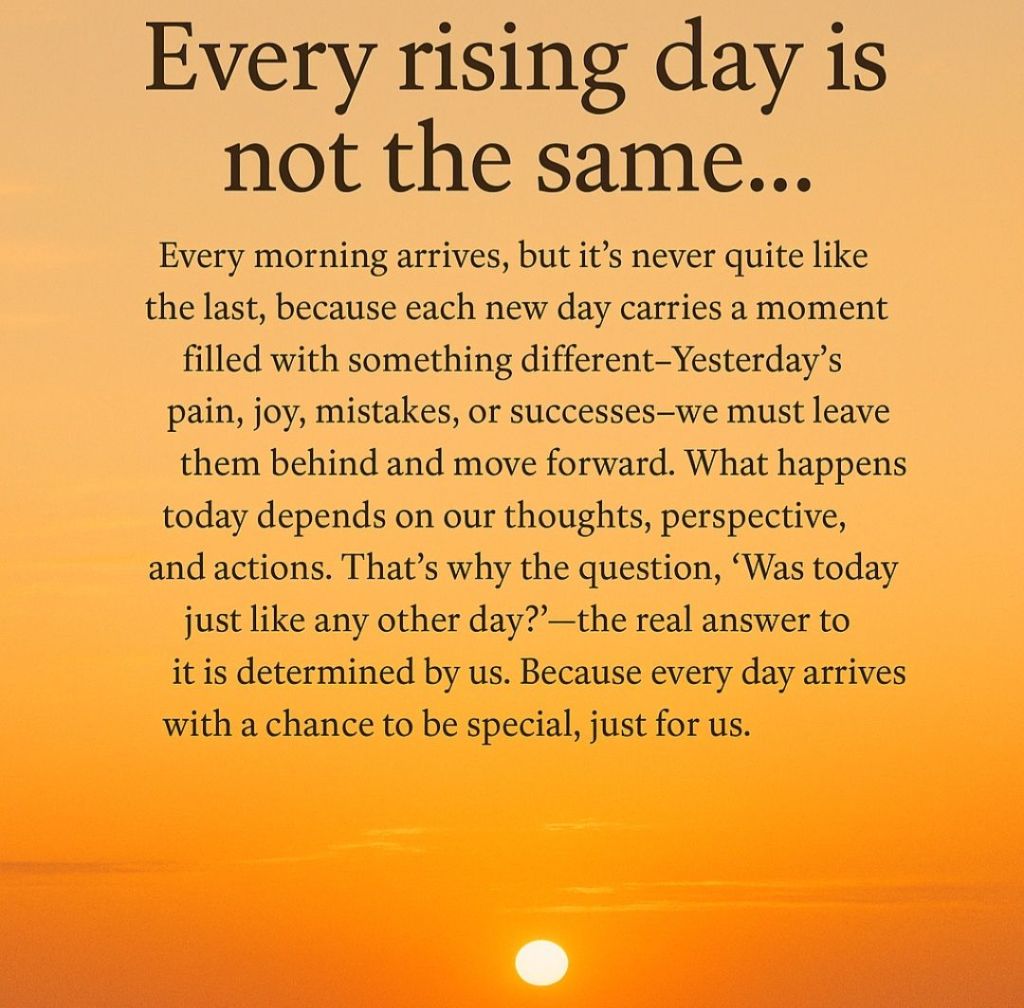 When a day ends, it doesn’t really disappear — its consequences, lessons, memories, and gratitude carry over into the next. So each day is not just a 24-hour segment, but a piece that shapes our life. That’s why every day is ‘special’ — because of the way you choose to live it.